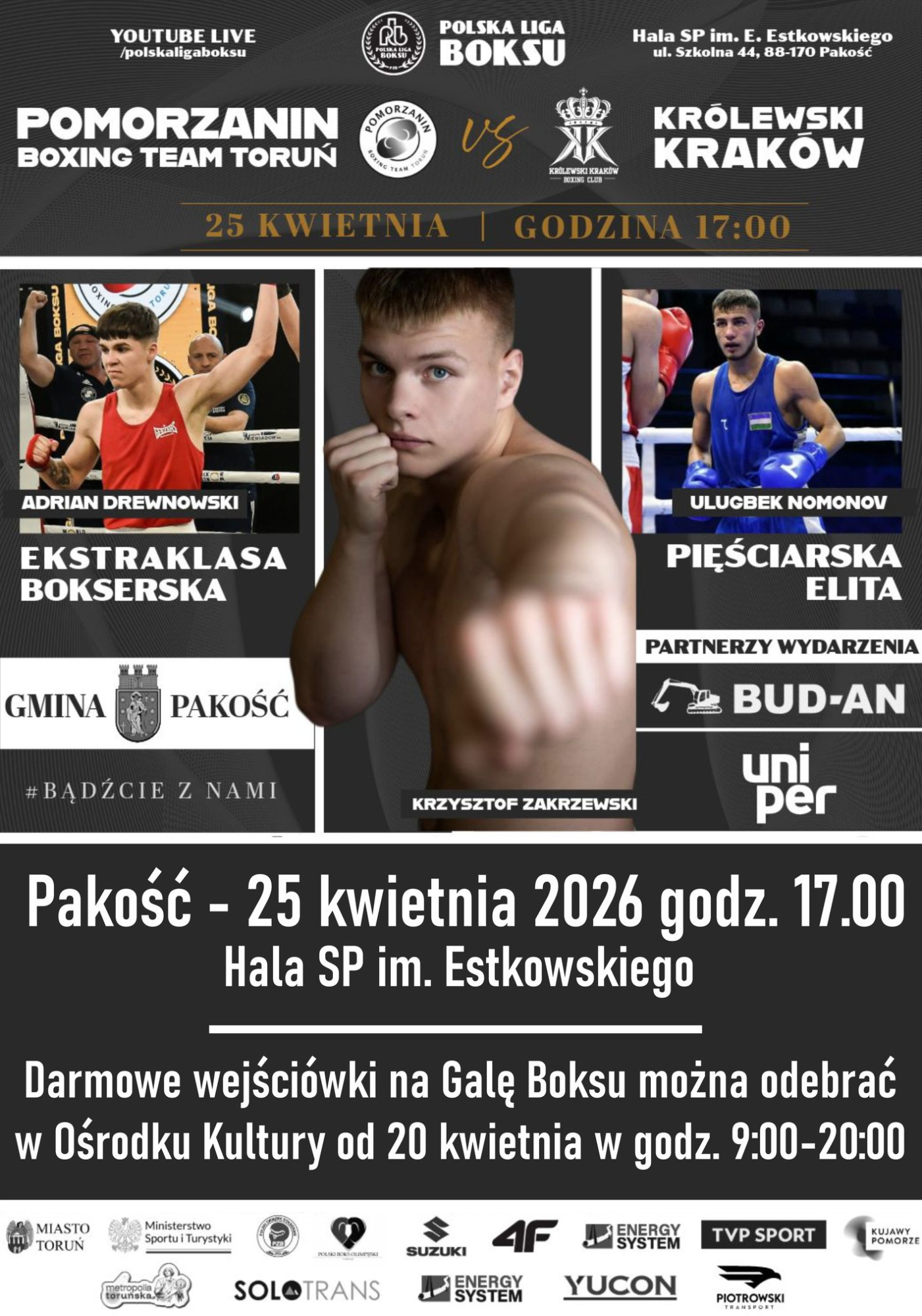 W ramach ekstraklasy bokserskiej dojdzie do rywalizacji pomiędzy zespołami Pomorzanin Boxing Team Toruń i Królewski Kraków. To oznacza obecność czołowych zawodników i walki na wysokim poziomie sportowym.