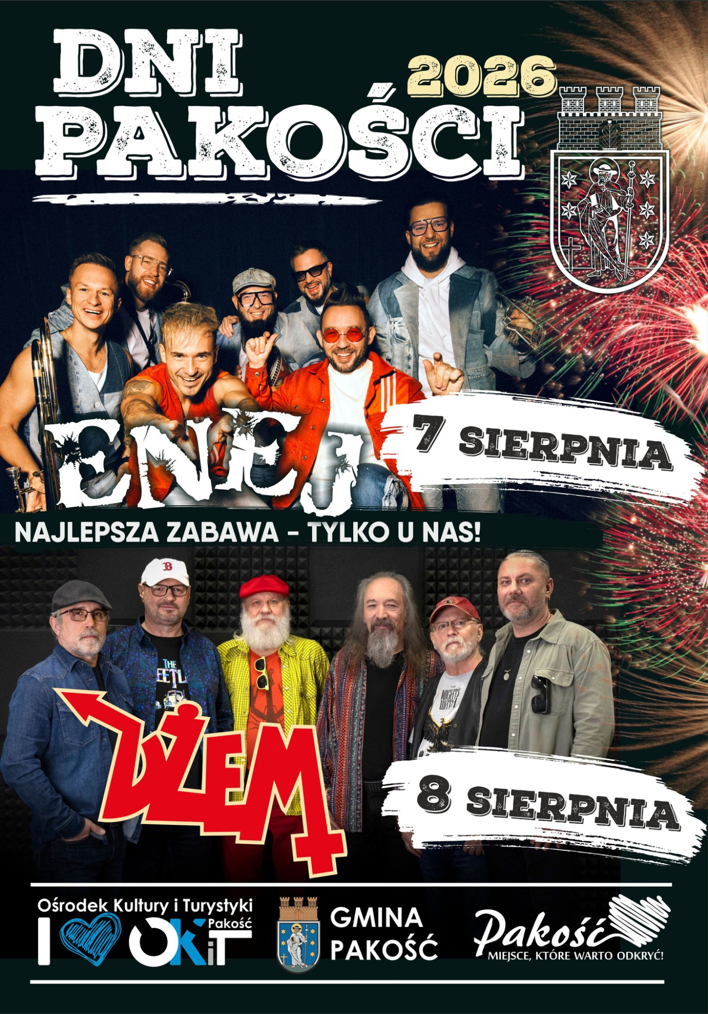 Choć do letniego sezonu koncertowego pozostało jeszcze sporo czasu, zaczynają pojawiać się pierwsze informacje o wykonawcach, których zobaczymy na świętach miast w regionie. Jako pierwsza karty odsłoniła Pakość. Ośrodek Kultury i Turystyki oraz Gmina Pakość zapraszają na tegoroczne Dni Pakości, które odbędą się 7 i 8 sierpnia. Na scenie wystąpią prawdziwe gwiazdy – zespół ENEJ oraz legenda polskiego blues-rocka – DŻEM.