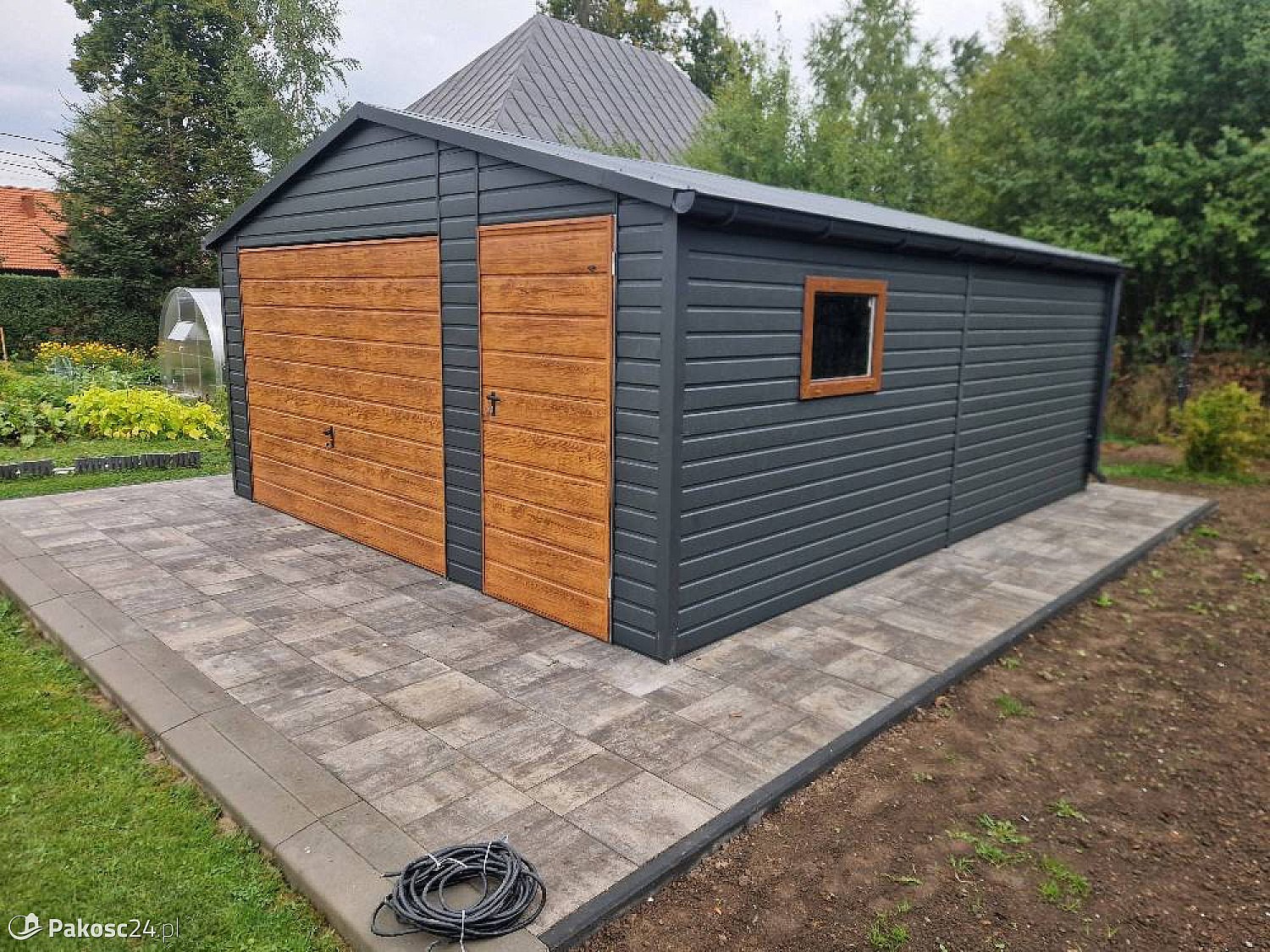 Oferuję garaże blaszane w kolorach drewnopodobnych - eleganckie, trwałe i idealne do każdego domu czy firmy.
